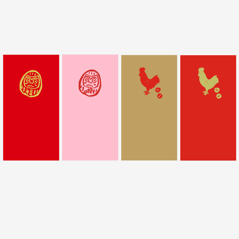 假如想在新年来点不一样的“红”包,不妨可以选择这款,金色的下蛋鸡和粉色达摩都透着喜庆,不落俗套,整体设计简洁并透着小小的诙谐可爱。