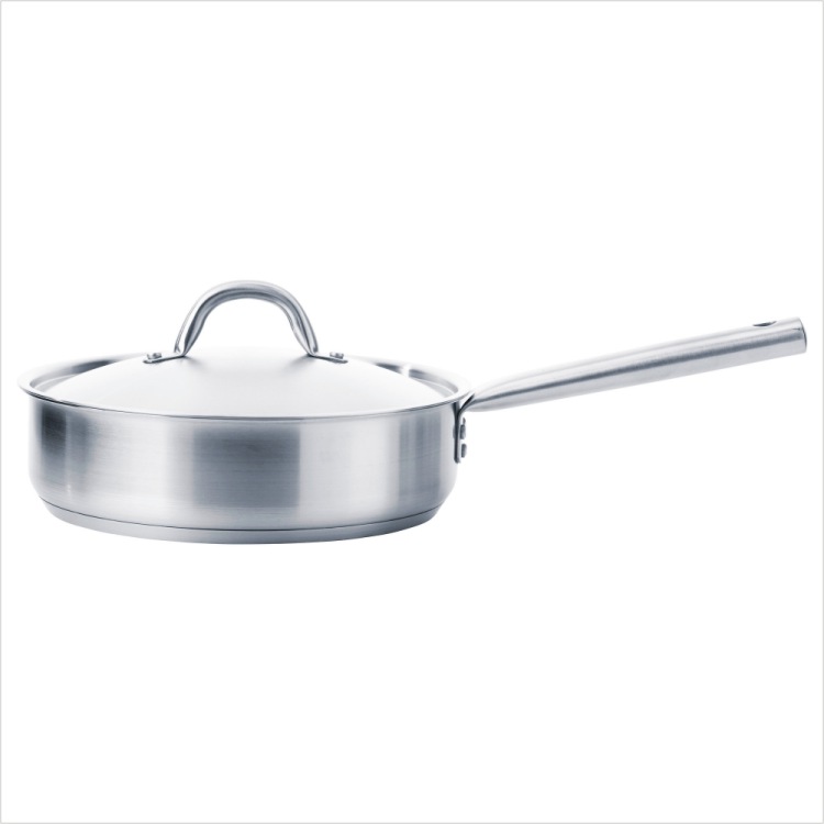 三层厚锅底,上下两层为不锈钢,中间一层为铝,受热均匀,不易使食物烧焦和粘锅。适合在包括电磁感应炉在内所有类型的灶具和烤箱使用。表面是刷有涂料的钢材;可比高光泽表面更好地掩盖污渍。